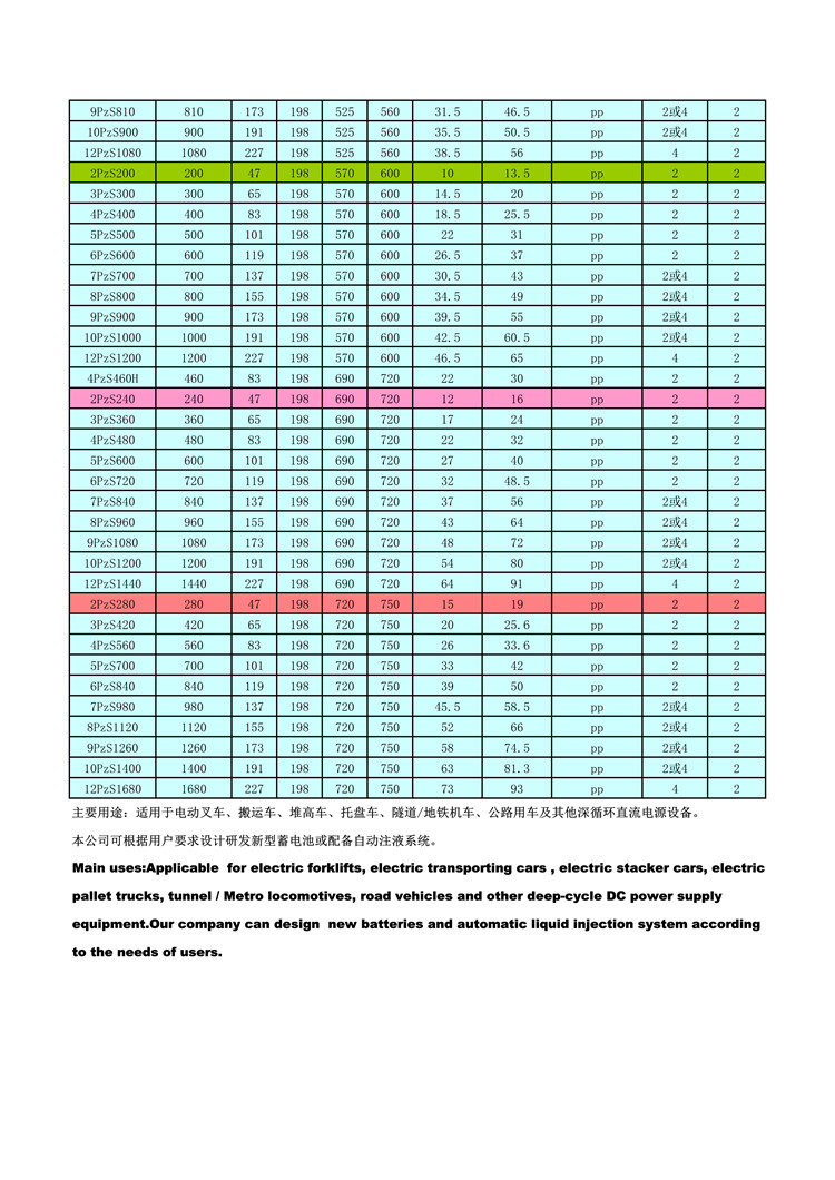 第四:PZS系列牽引用鉛酸蓄電池的型號(hào):這個(gè)系列的電池規(guī)格型號(hào)較多,我們可以看到電池的規(guī)格型號(hào)是有規(guī)律可循的,我們可以看到這個(gè)系列的電池的寬度有個(gè)固定的尺寸198MM,然后長(zhǎng)度根據(jù)型號(hào)2-12循環(huán)出現(xiàn),同一個(gè)長(zhǎng)度和寬度的電池高度不一樣,電池容量也是不一樣的,也是有規(guī)律可循的。需要了解更多可以給小編留言。